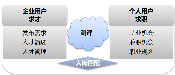 对个人用户而言,是一个为求职者提供自我认识、求职资讯与建议的平台。旨在通过专业的测评技术,让更多的求职者认识自我、提高职业生涯规划的意识与能力,最终找到理想工作。